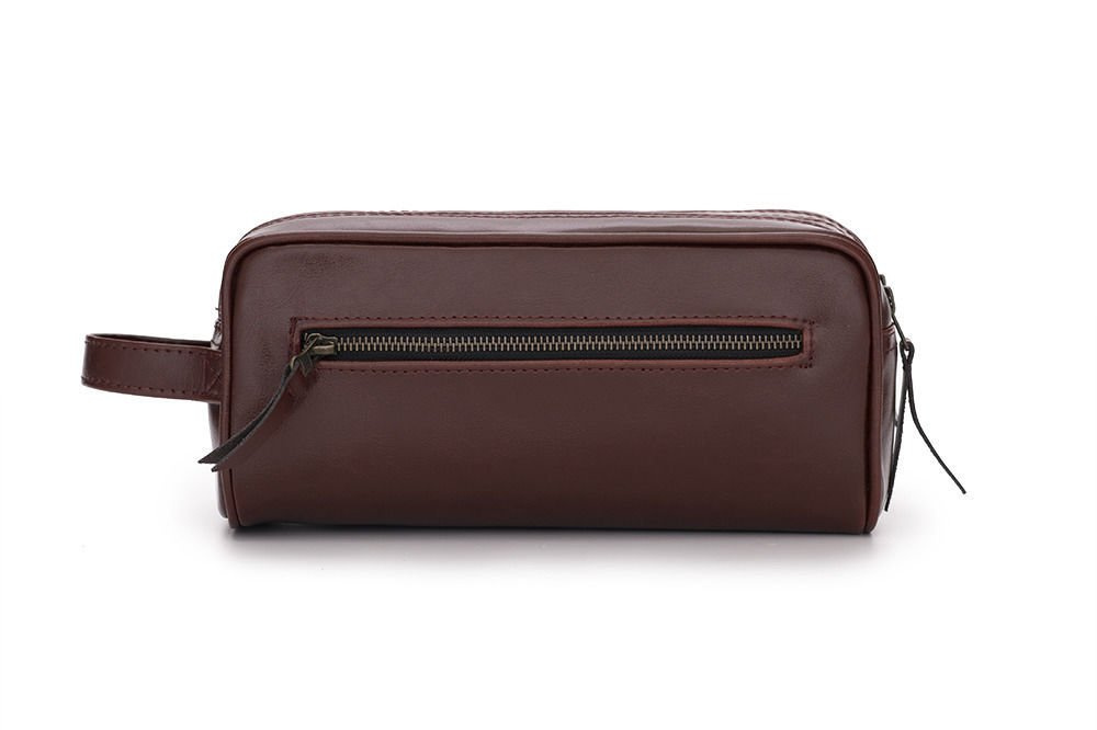 - Capacious men's beauty bag made of grain Italian leather.