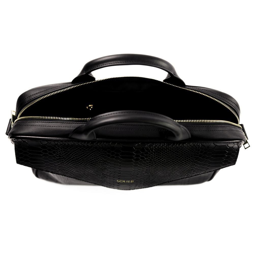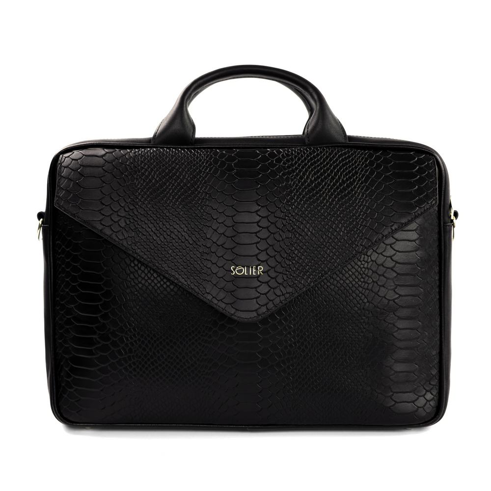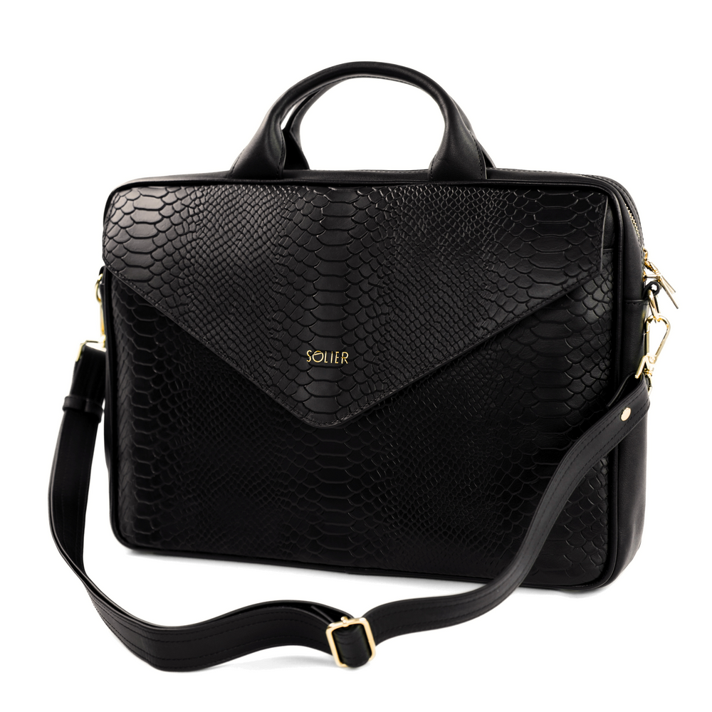 Genuine leather woman's laptop bag FL15 Positano black with snake pattern
