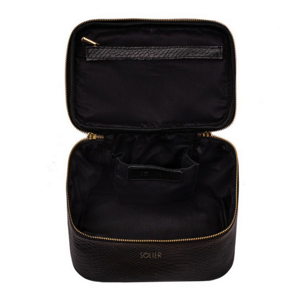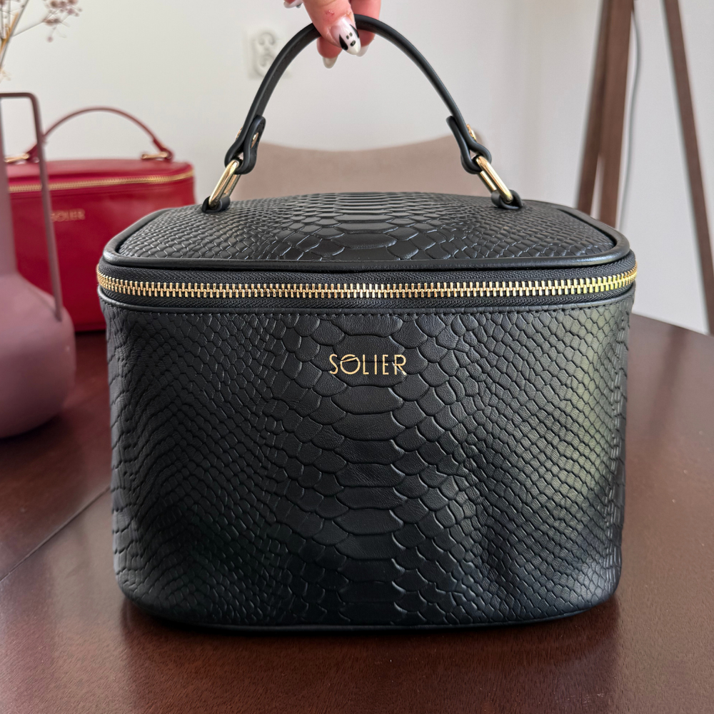 Elegant genuine leather women's beauty bag FK01 Solier black snake