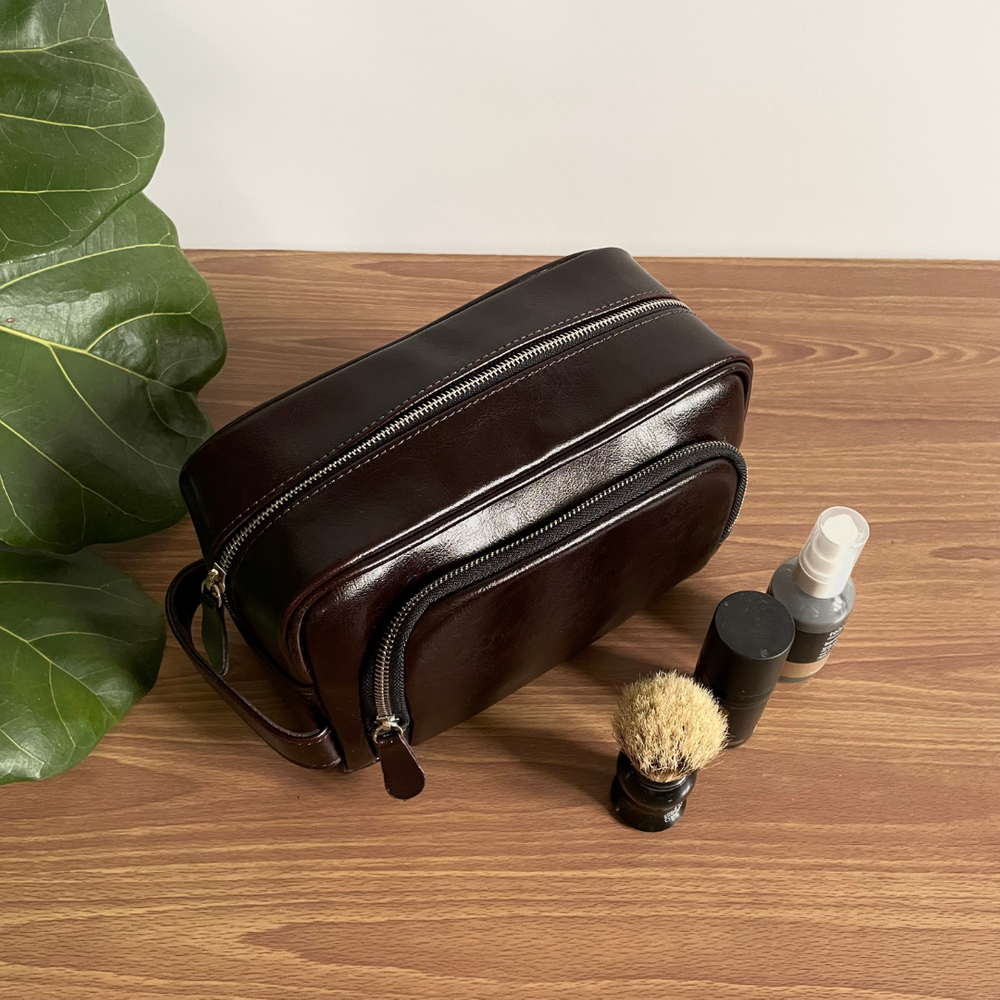 Elegant genuine leather men's beauty bag SK04 SOLIER brown-maroon