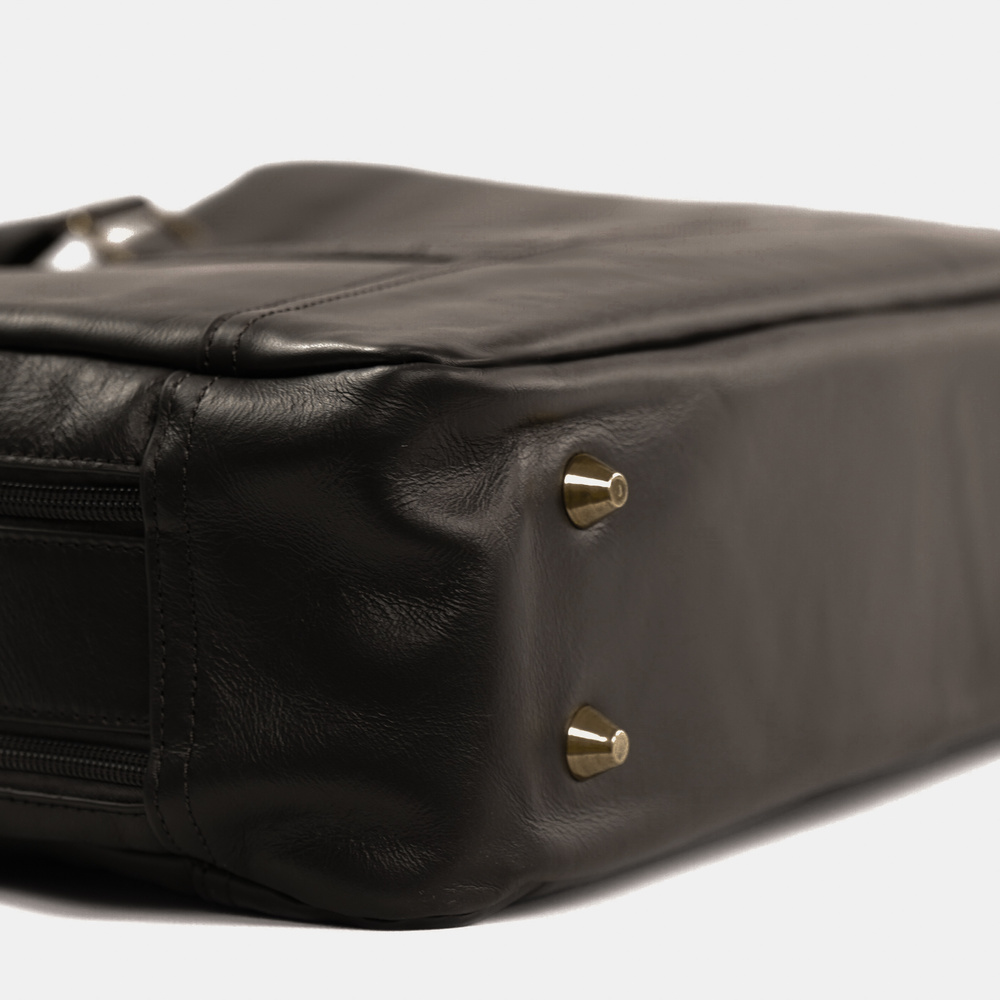 Skórzana torba męska SL02 posiada wygodne, wzmocnione uchwyty oraz regulowany pasek na ramię o długości ok. 145 cm, wykonany ze skóry naturalnej. Dodatkowo, metalowe stopki na spodzie chronią torbę przed zabrudzeniem i zarysowaniami. To funkcjonalna i elegancka skórzana torba na laptopa męska, zaprojektowana z myślą o najwyższym komforcie i trwałości.