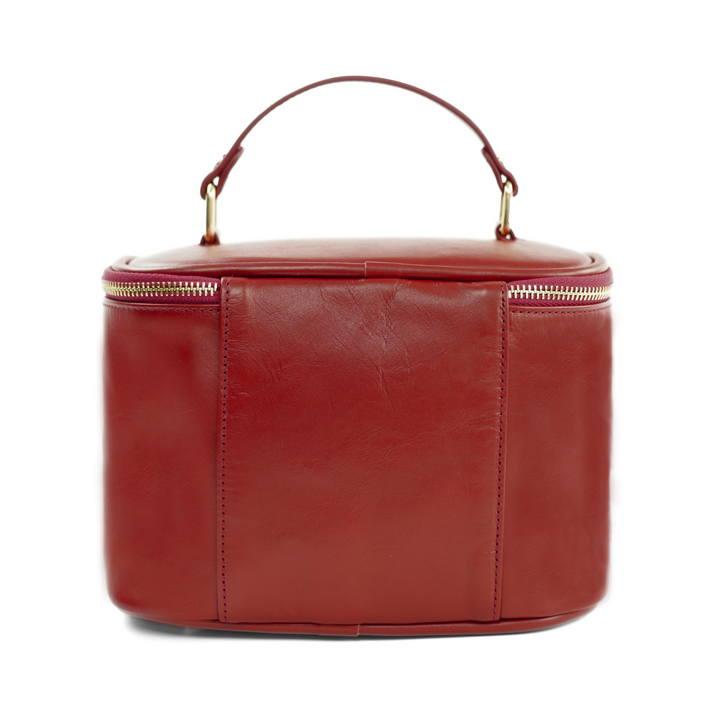 - Skórzana kosmetyczka w kształcie kuferka wykonana ze skóry naturalnej.