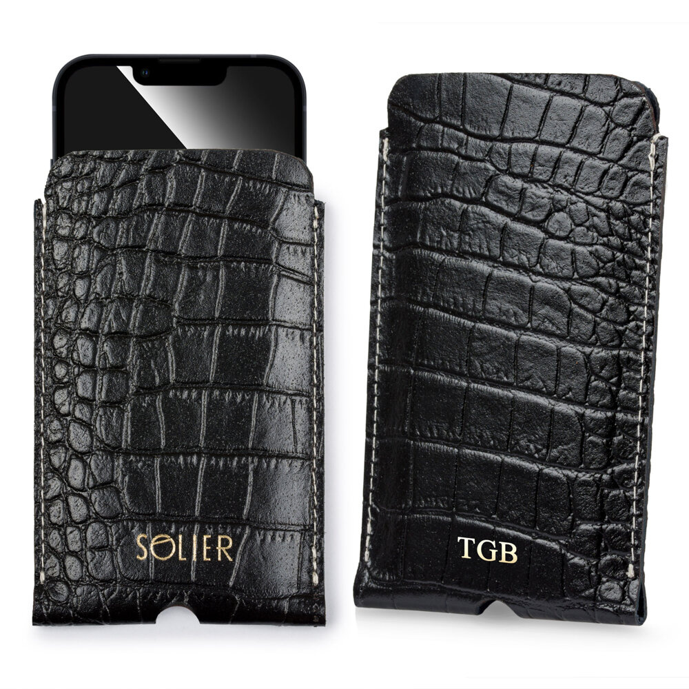 Personalizowane skórzane etui na IPhone 12/13/14 Solier SA57 czarny wąż