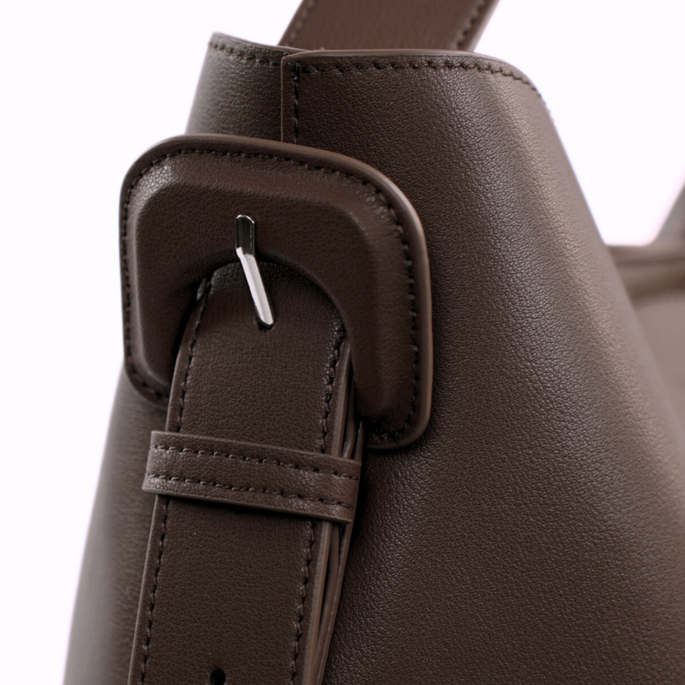 Skórzana torebka damska z klamrą Solier FL44 Elara ciemny brąz