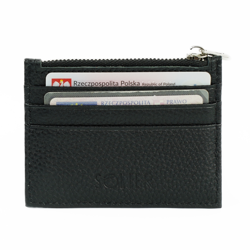 Skórzany portfel na karty z zamkiem etui slim Solier SW42 BLACK