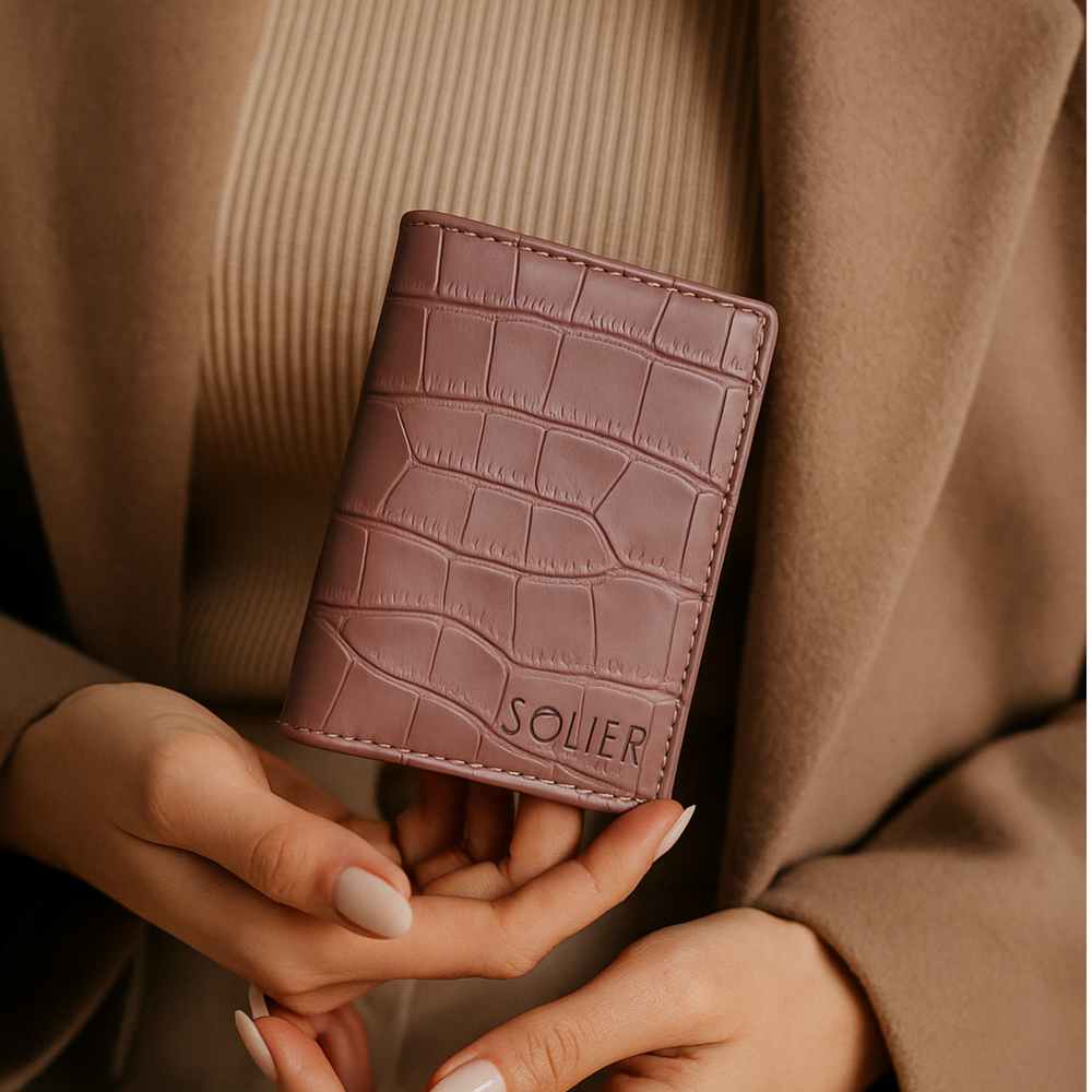 Skórzany elegancki wizytownik damski etui na dokumenty Solier SW46 Róż