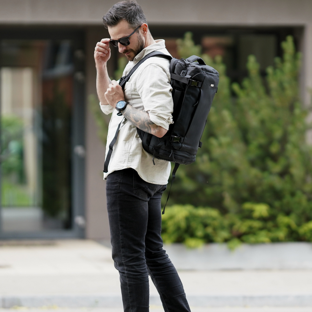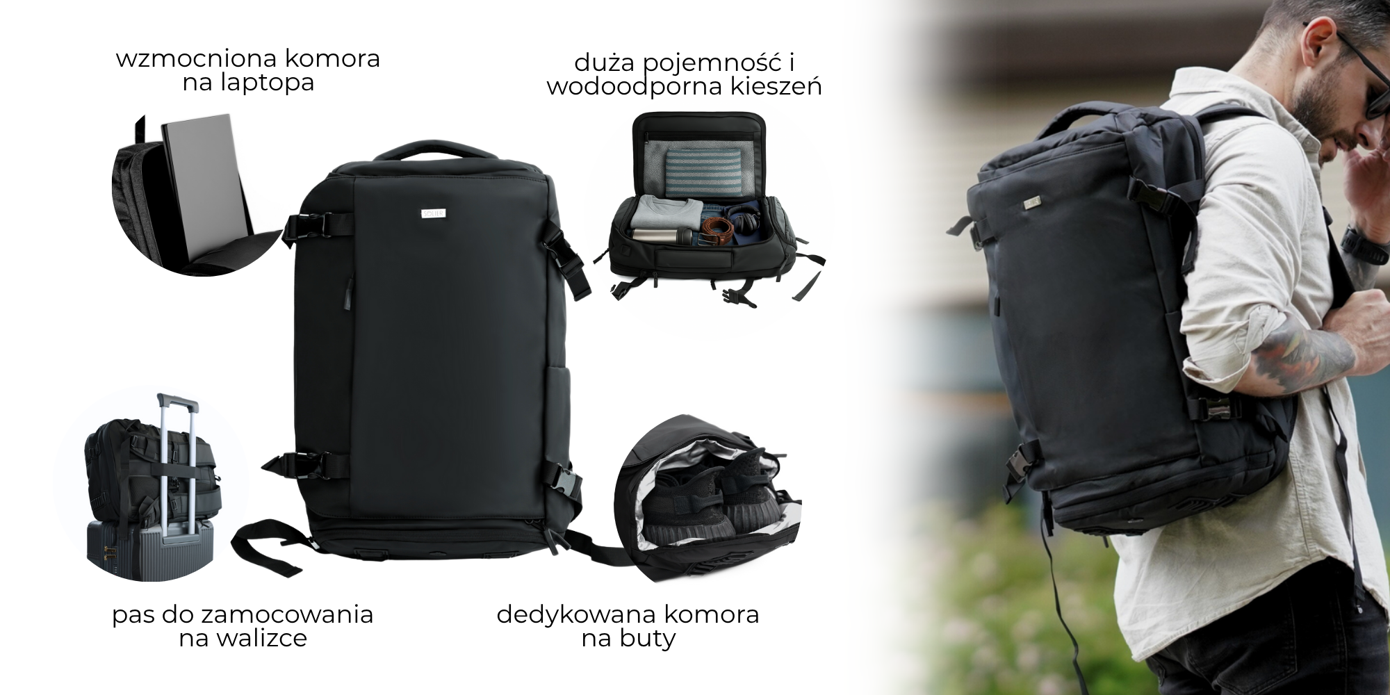 Plecak podróżny Solier – czarny, zaawansowany, niezawodny. Gotowy na wszystko.