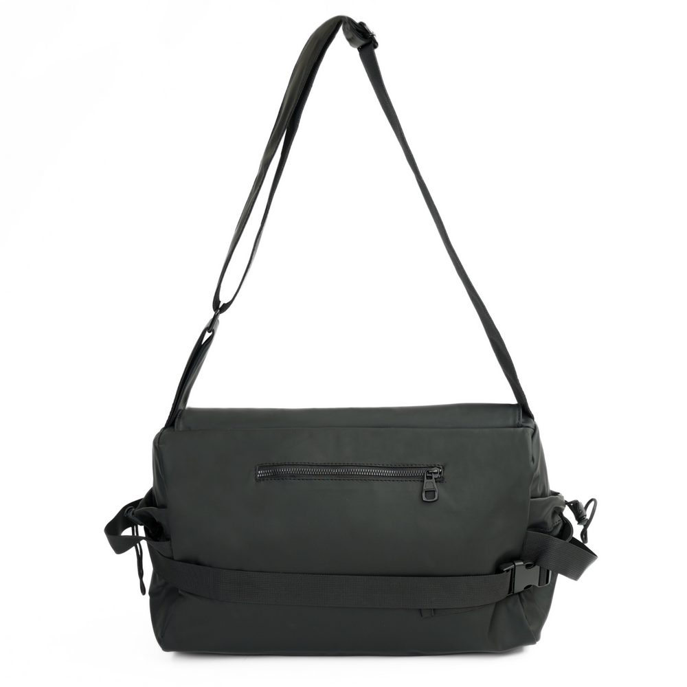 Pod klapą torby znajduje się bezpieczna, zamykana na zamek główna komora, która z łatwością pomieści wszystko, co najważniejsze – od laptopa, przez dokumenty, aż po akcesoria codziennego użytku. Wewnątrz znajdziesz dodatkową kieszeń na suwak oraz praktyczne przegrody pomagające utrzymać porządek.