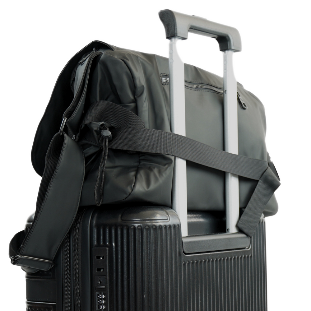 Torba posiada dwie boczne kieszenie ze ściągaczami, idealne na butelkę z wodą lub parasolkę. Z tyłu umieszczono zamykaną na zamek kieszeń na podręczne drobiazgi. Model VESARI został wyposażony także w specjalny uchwyt, umożliwiający przymocowanie torby do walizki – idealne rozwiązanie w podróży.