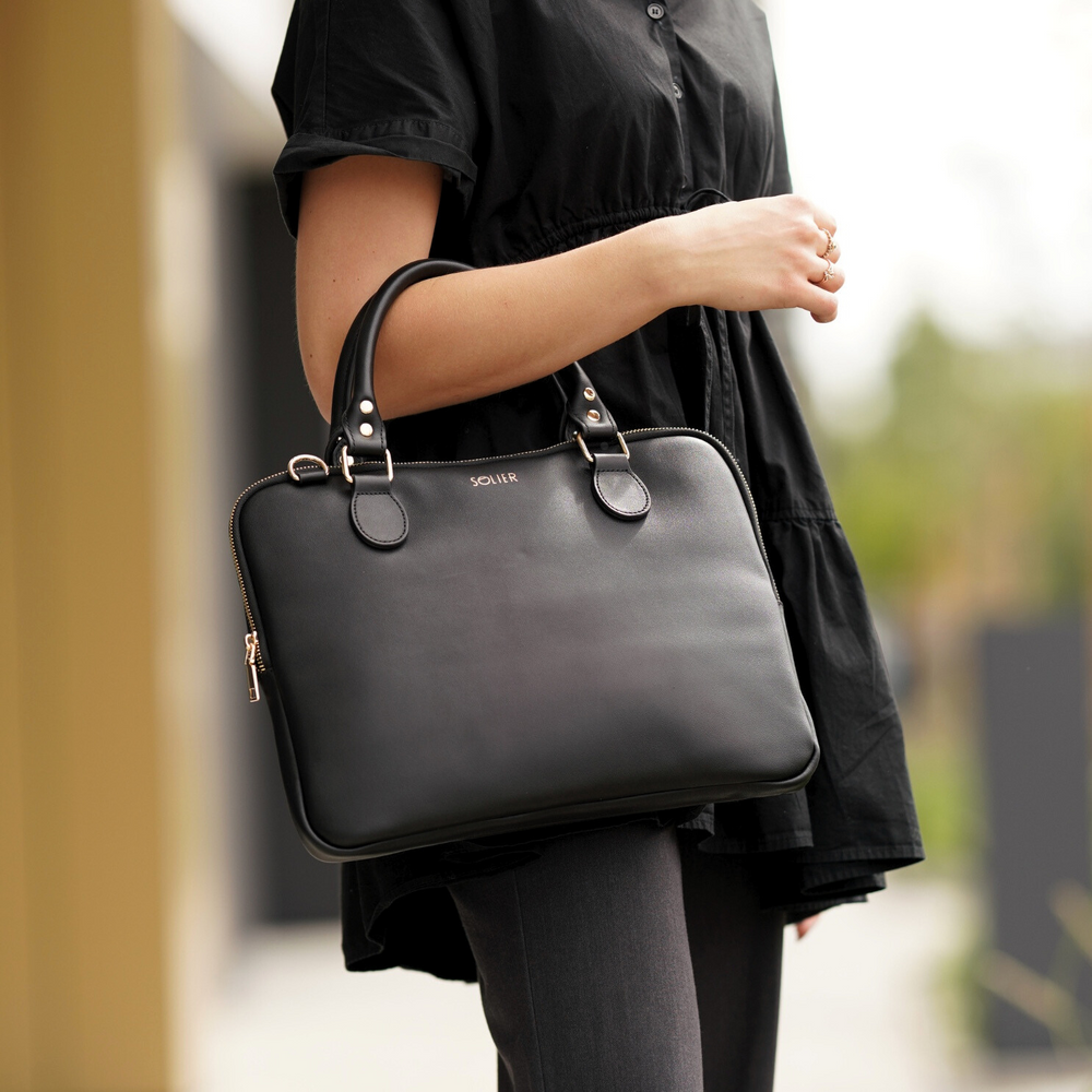 - Klasyczna, kompaktowa torba na ramię i do ręki z miejscem na laptopa.