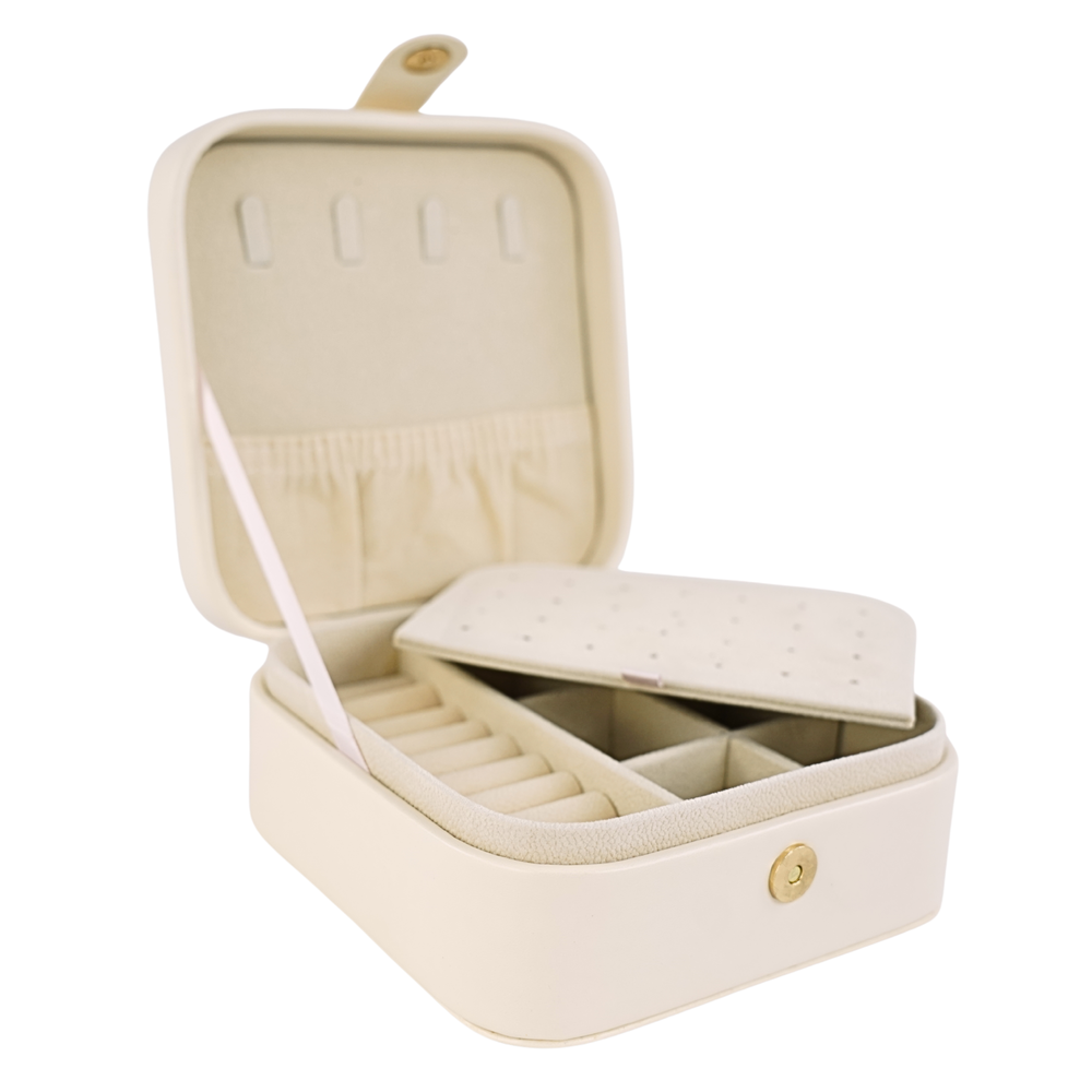 Etui zamykane jest na zatrzask – łatwo je otworzysz jedną ręką, a biżuteria pozostaje bezpieczna nawet w podróży. To praktyczne rozwiązanie, które pozwala spakować wszystko w kilka chwil.