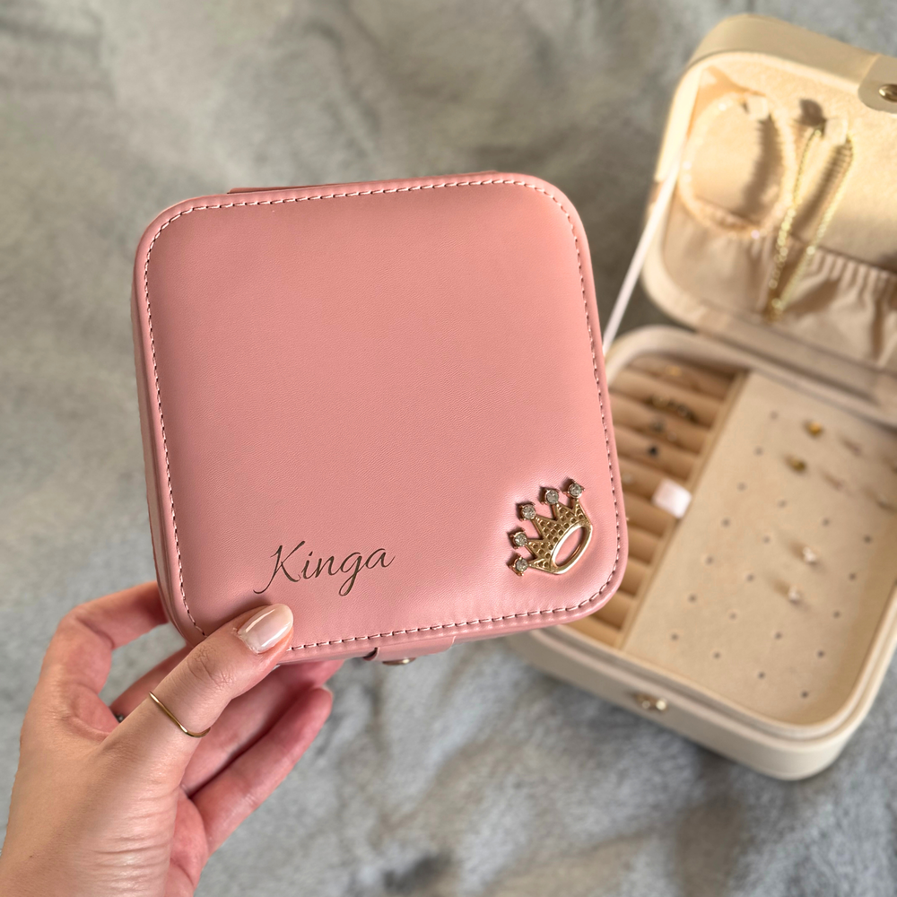 Możesz spersonalizować swoje etui na biżuterię dodając imię, inicjał lub krótki napis. Dzięki temu organizer zyska indywidualny charakter i stanie się świetnym, przemyślanym prezentem. To drobny detal, który sprawia, że szkatułka nie jest już tylko praktycznym dodatkiem – staje się Twoja.