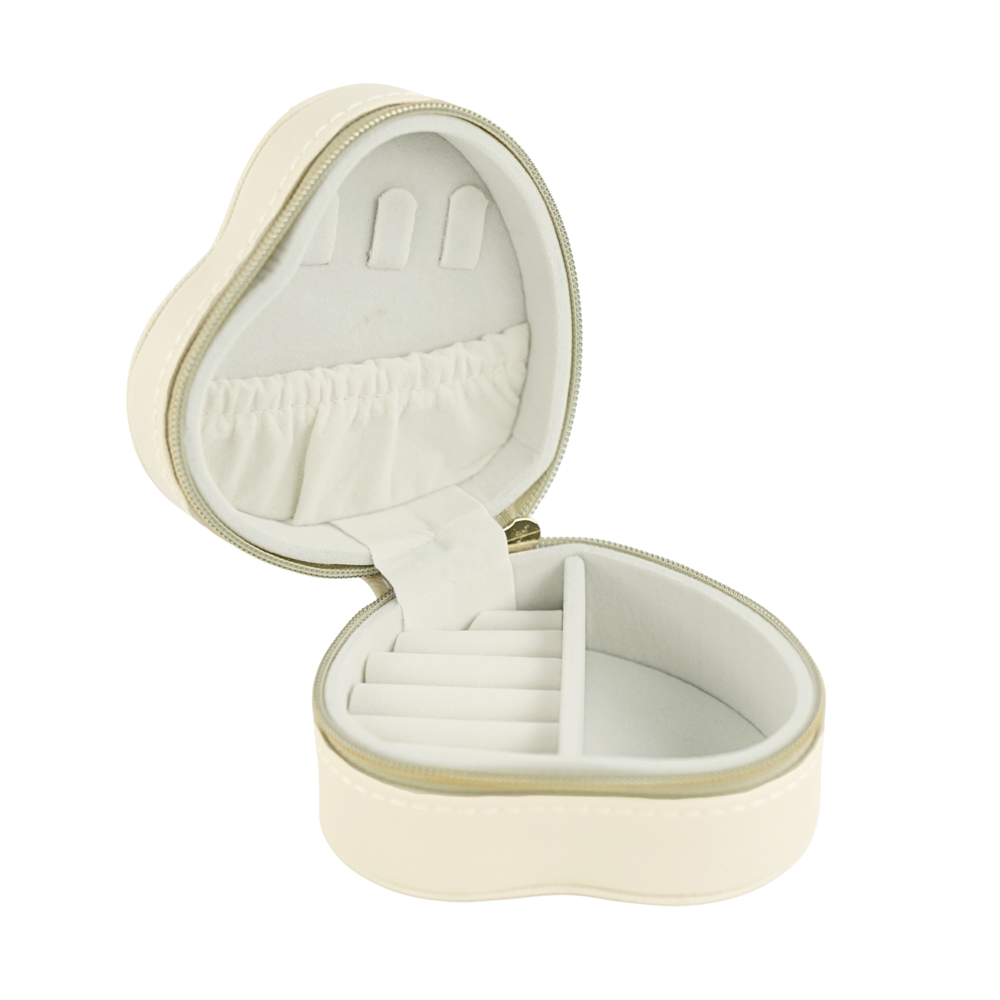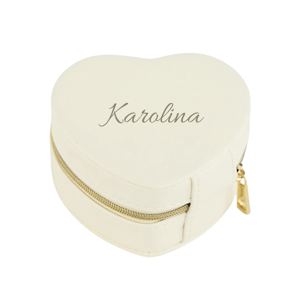 Personalizowana szkatułka na biżuterię w kształcie serca - jasny beż