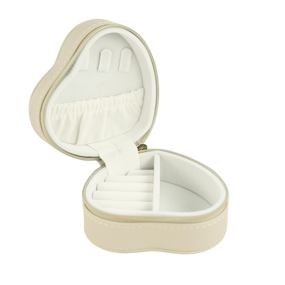 Szkatułka została zaprojektowana tak, aby wszystko było na swoim miejscu. Kompaktowy rozmiar (9,5 cm x 5,5 cm) sprawia, że bez problemu zmieści się w torebce, kosmetyczce czy szufladzie z codziennymi dodatkami. To wygodne rozwiązanie, kiedy chcesz szybko spakować ulubione kolczyki, pierścionki czy delikatne łańcuszki.